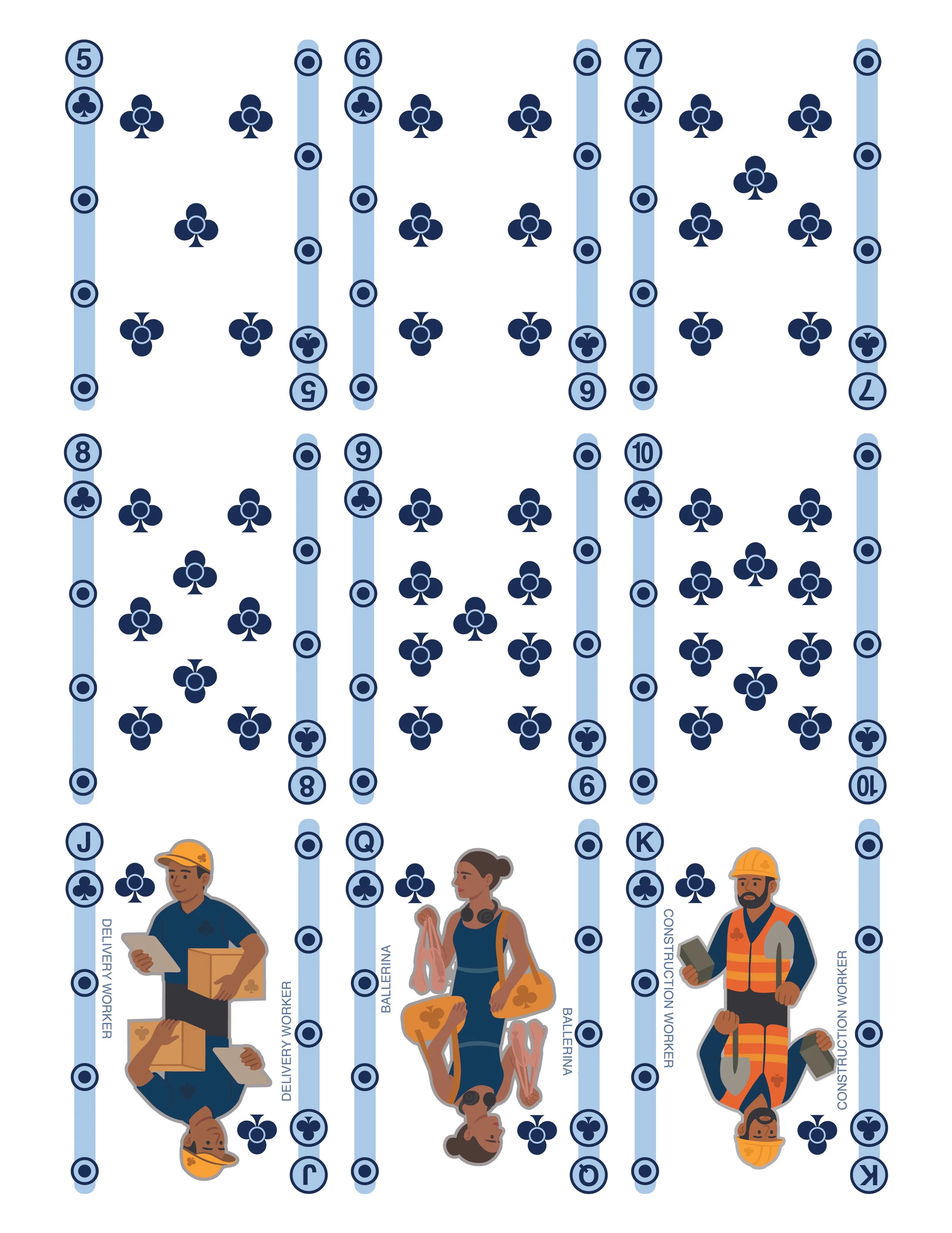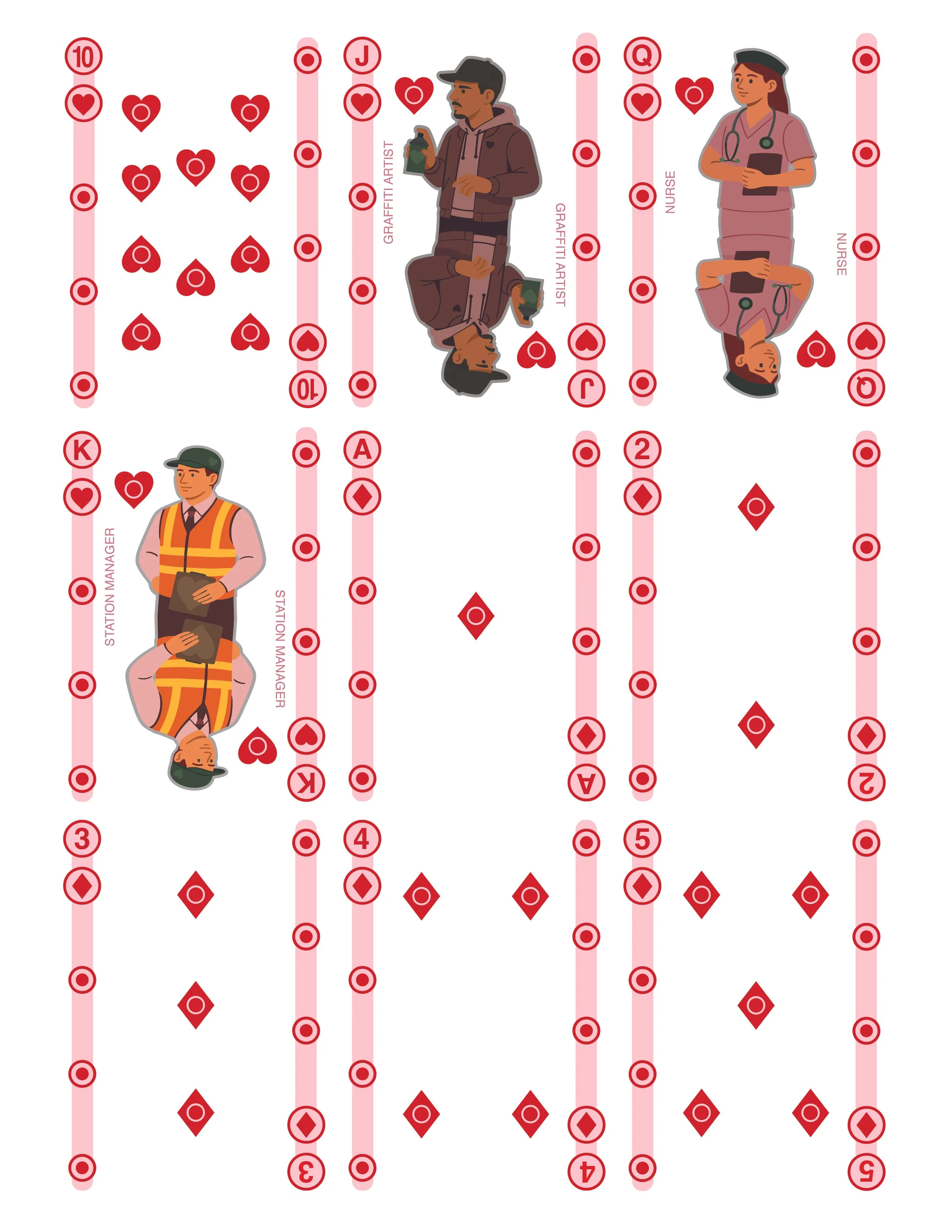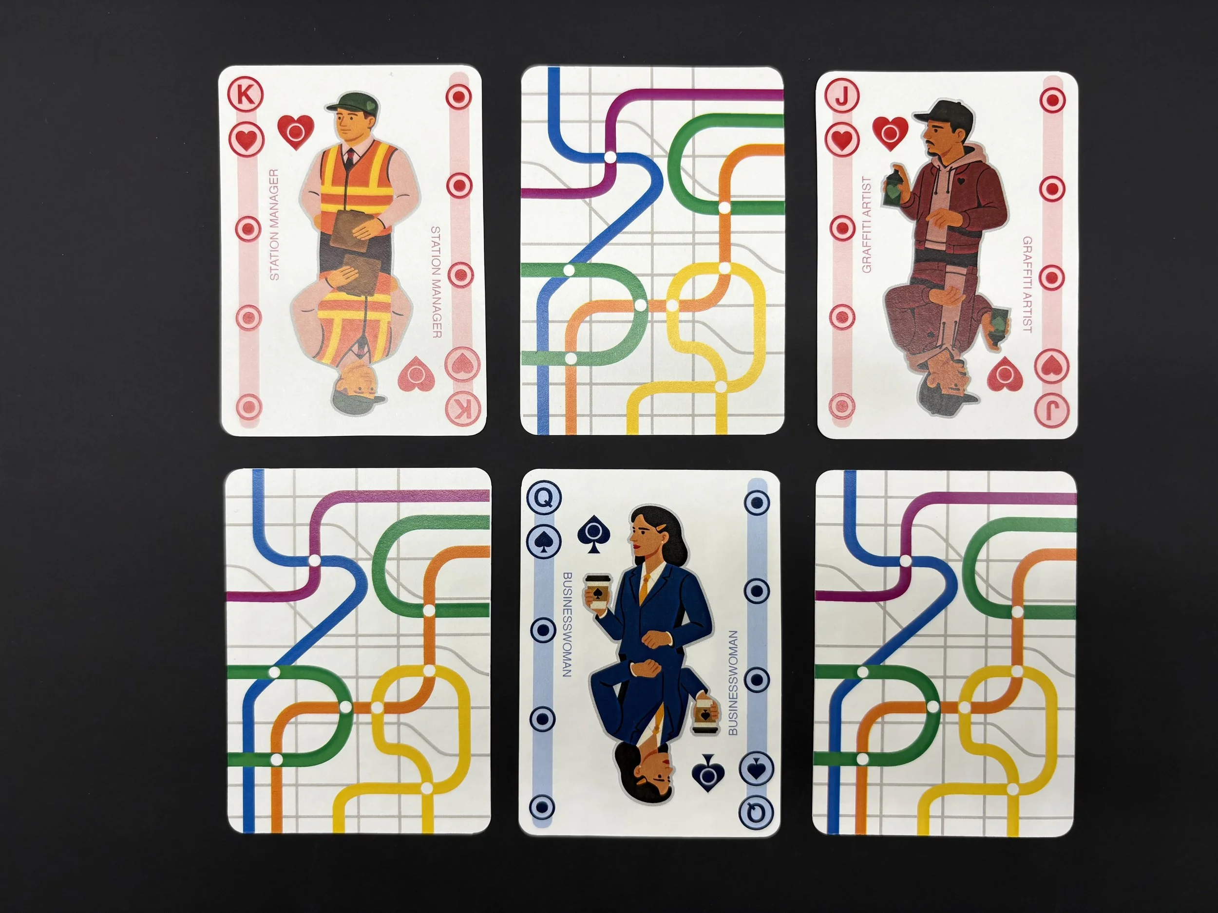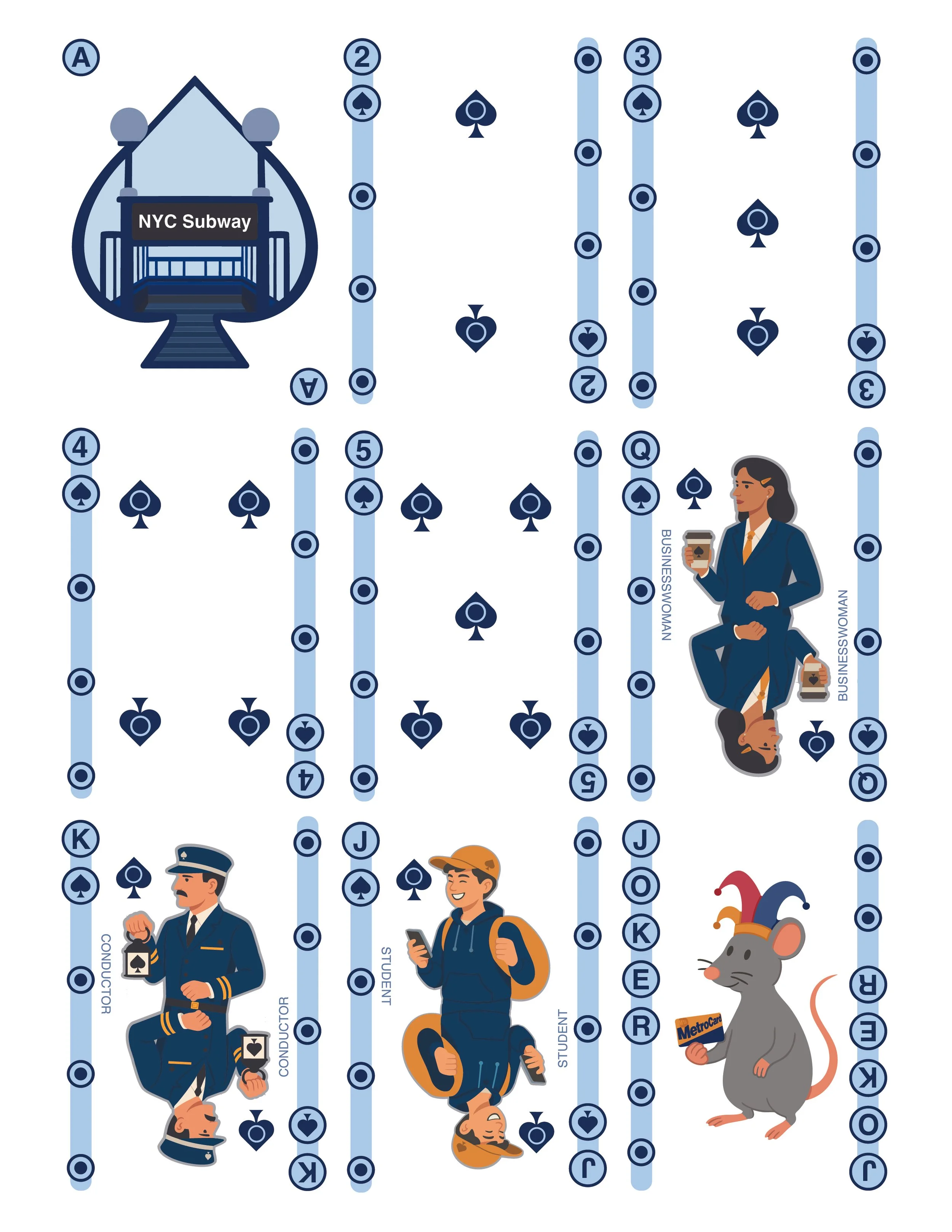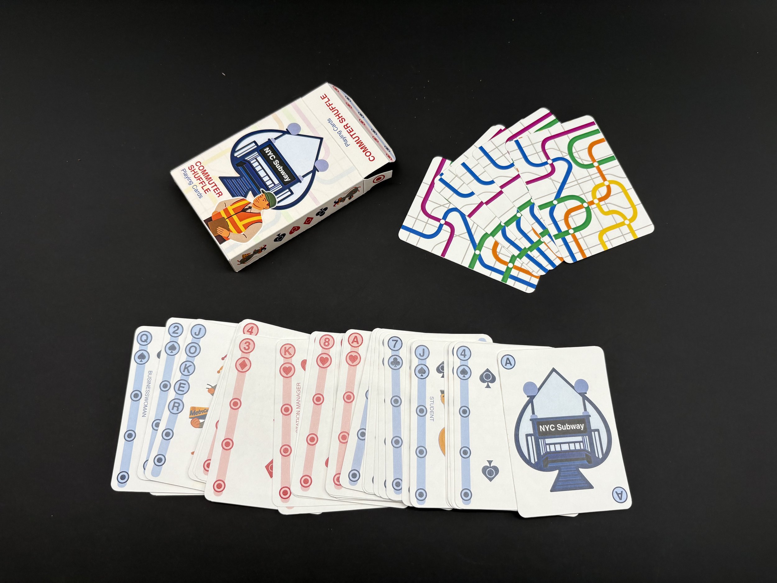 “Commuter Shuffle” reimagines a deck of cards through the environment and branding of the NYC subway system, celebrating the various faces of the subway.